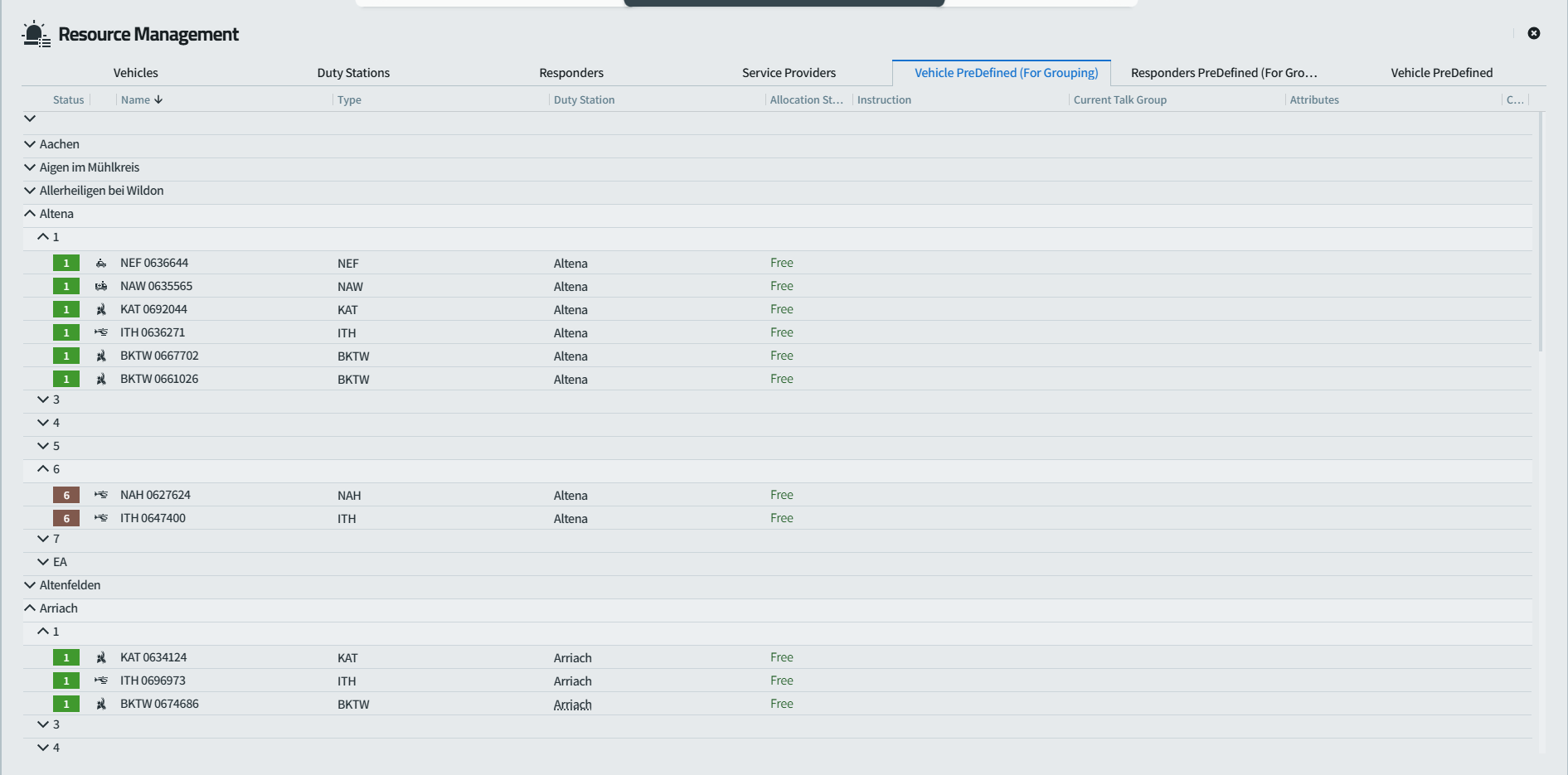 - Resource attributes: Recurring statuses such as “only reachable via DME (digital message receiver)” or “partially operational” can be quickly recorded and clearly displayed.