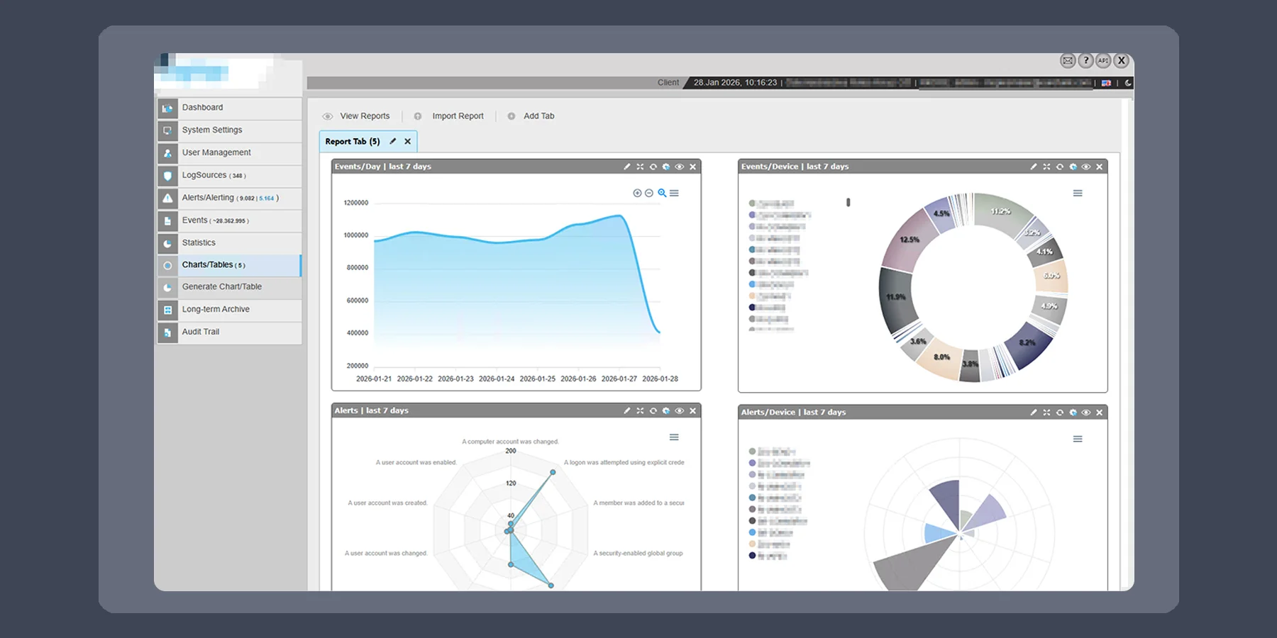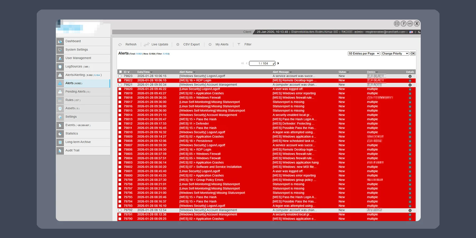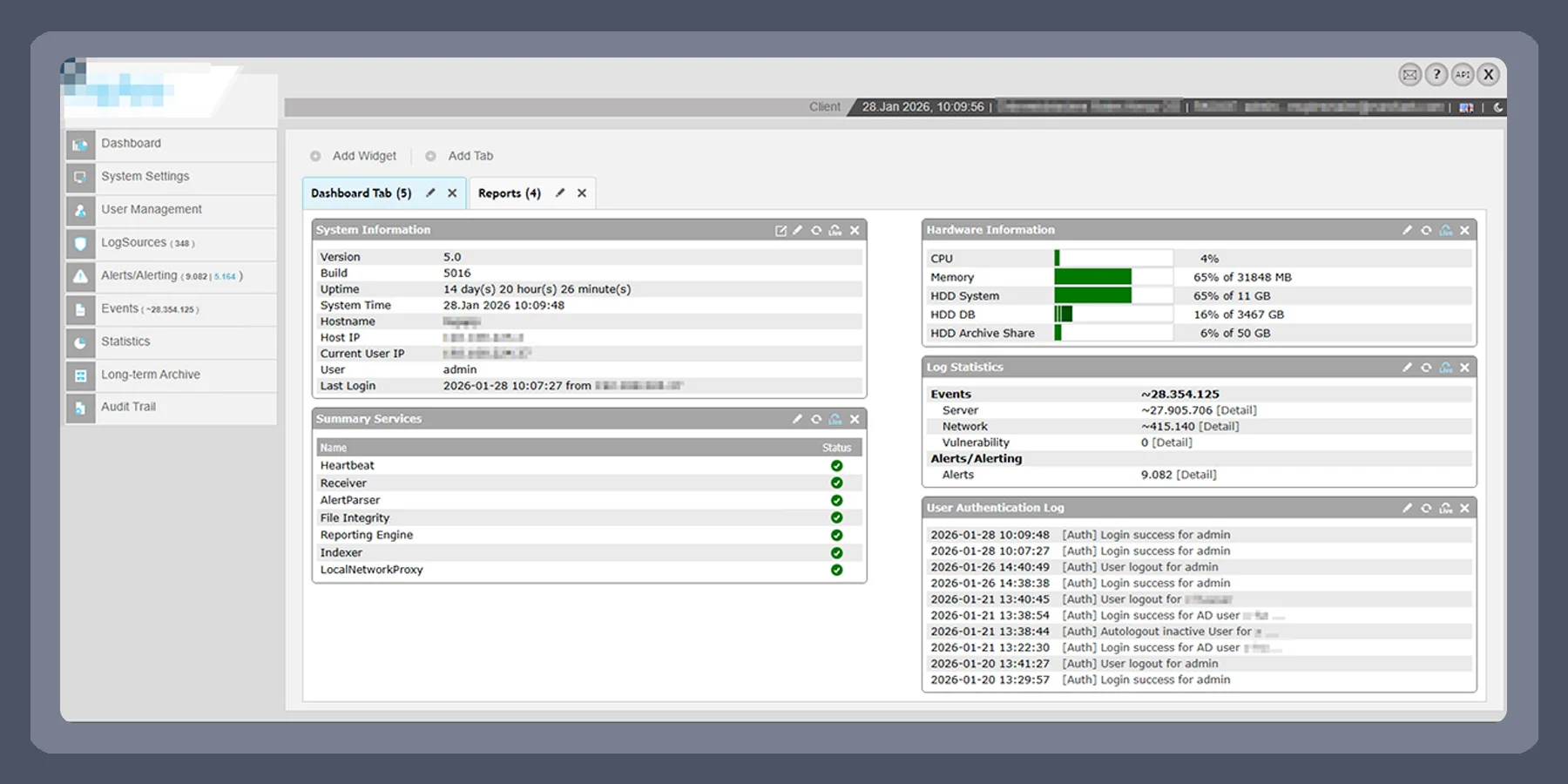 Die Lösung sammelt Log- und Eventdaten aus der gesamten IT- und Systemlandschaft, analysiert diese in Echtzeit und stellt sie übersichtlich dar. So lassen sich potenzielle Bedrohungen frühzeitig identifizieren, priorisieren und bewerten.